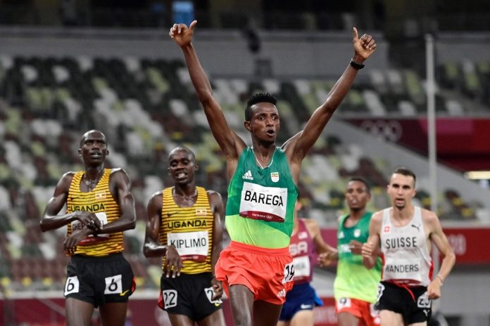 En los 10 mil metros masculinos, 25 vueltas completas al estadio, los cuatro primeros lugares vinieron del África. El oro fue para el etíope Selemon Barega con 27 minutos 43 segundos y 22 centésimas. Le siguió el ugandés Joshua Cheptegei (plata) con 41 centésimas más que su rival y su compatriota Jacob Kiplimo, que llegó 25 centésimas más tarde.
