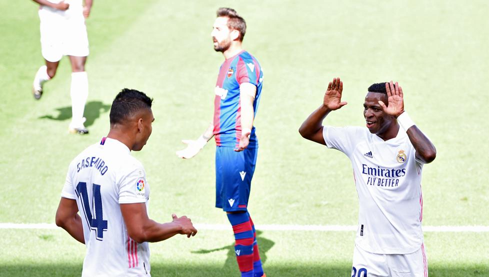 En la primera parte, Modric cobro un saque de esquina y tras un rechace de la defensa, Vinicius anotó plácidamente y batió al portero Aitor. Luego, los blancos jugaron con comodidad ante un Levante que careció de agresividad y que apenas se acercó a Courtois. Después, Vukcevic le ganó en un salto a Nacho y su cabezazo se estrelló en el larguero.