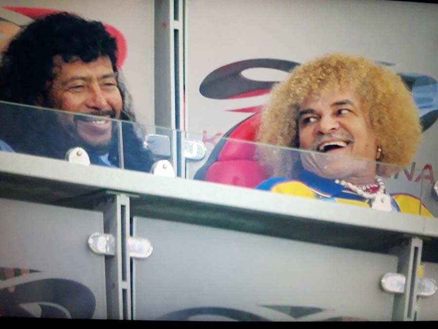Cómo en los mejores tiempos. René Higuita y el ‘Pibe’ Valderrama festejaron en las tribunas la goleada de Colombia ante Polonia.