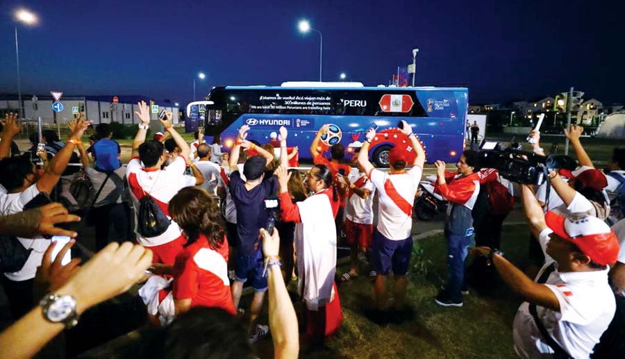 Made in Perú. A pesar de la eliminación, los hinchas ‘incaicos’ siguen mostrando con orgullo la bandera nacional por todas las sedes mundialistas.