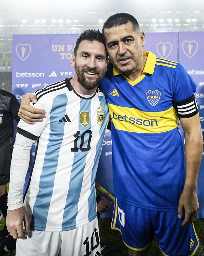 Juan Román Riquelme tuvo su partido de despedida este domingo ante una Bombonera llena que ovacionó a uno de sus máximos ídolos en un partido que enfrentó a Boca contra la Selección Argentina, dirigida por Lionel Messi, quien este sábado había estado presente en el partido. Homenaje a Maximiliano Rodríguez en Rosario.