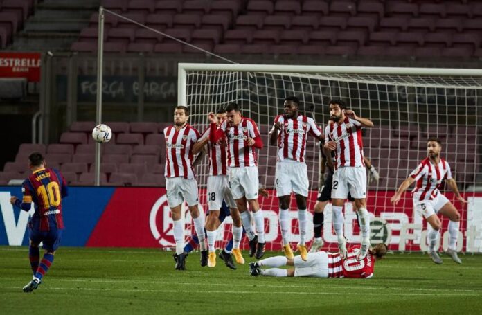 En la primera parte, el Barcelona empezó bien con un Griezmann activo entre líneas. El príncipe sirvió un balón al argentino, quien no puso superar al meta Unai Simón en el mano a mano. Incluso, Pjanic lo intentó y su disparo rebotó en el pecho de Leo saliendo ligeramente alto. Después, Messi ejecutó un tiro libre con tal precisión que ni el salto desesperado de Yeray corriendo hacia atrás evitó el golazo.