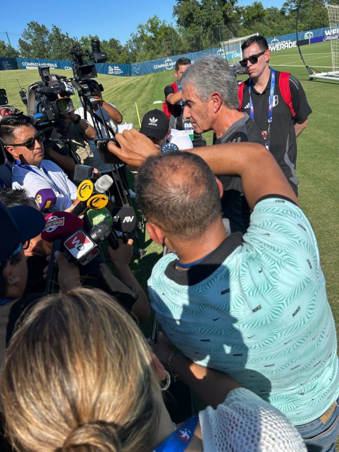 Vamos a las 4 de la tarde al entrenamiento de Perú, con Héctor “Elito” Gonzáles, nuestro reportero gráfico. En la mañana llegó Sandro Centurión y se alojó en nuestro mismo hotel. Al llegar varios hinchas lo reconocen. Le preguntan porque se pelea con el tio Elejalder Godos. Por qué no ha venido si su hija vive en Kansas, le dice uno de ellos. Sandro infla el pecho y se bota, a él le aloca y le ruletea la peliculina. Está en su salsa. Lo ven en este país por las redes. El calor es impresionante. Marca 35 grados la temperatura. Nos llevan a una zona con una pequeña carpa. Ya llegó el bus de la selección, pasan los jugadores. Solo algunos saludan a los hinchas. Pasan con sus auriculares en sus orejas y algunos saludan.