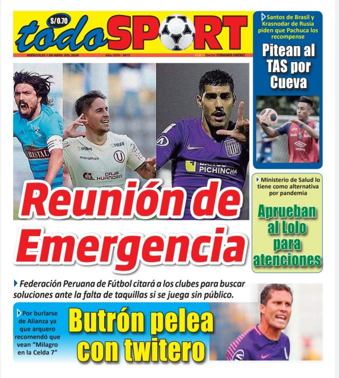 Portada impresa – Diario Todo Sport (01/04/2020)