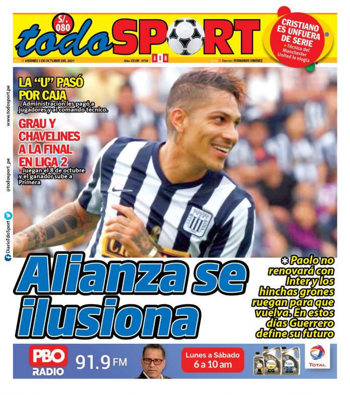 Portada impresa – Diario Todo Sport (01/10/2020)
