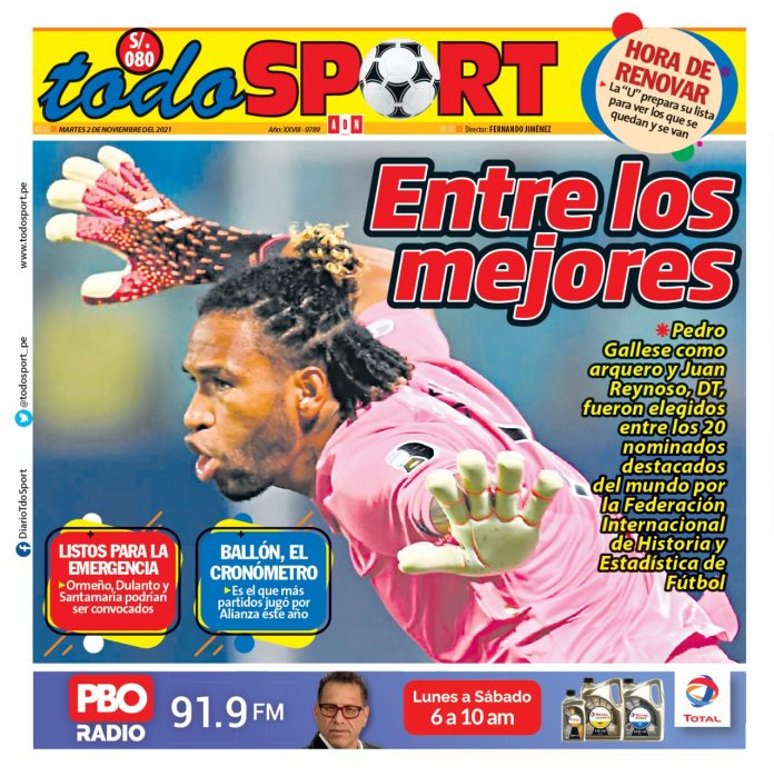 Portada impresa – Diario Todo Sport (02/11/2020)