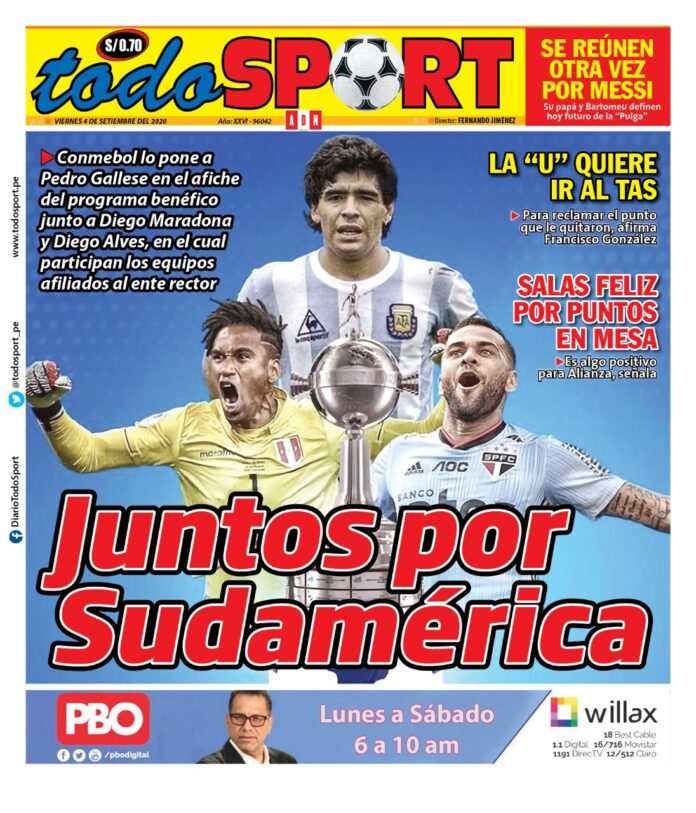 Portada impresa – Diario Todo Sport (04/09/2020)