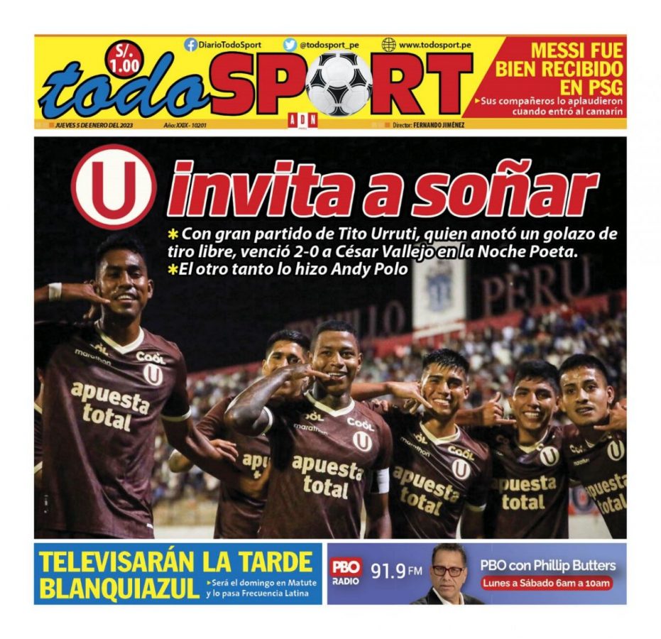 Portada impresa – Diario Todo Sport (05/01/2022)