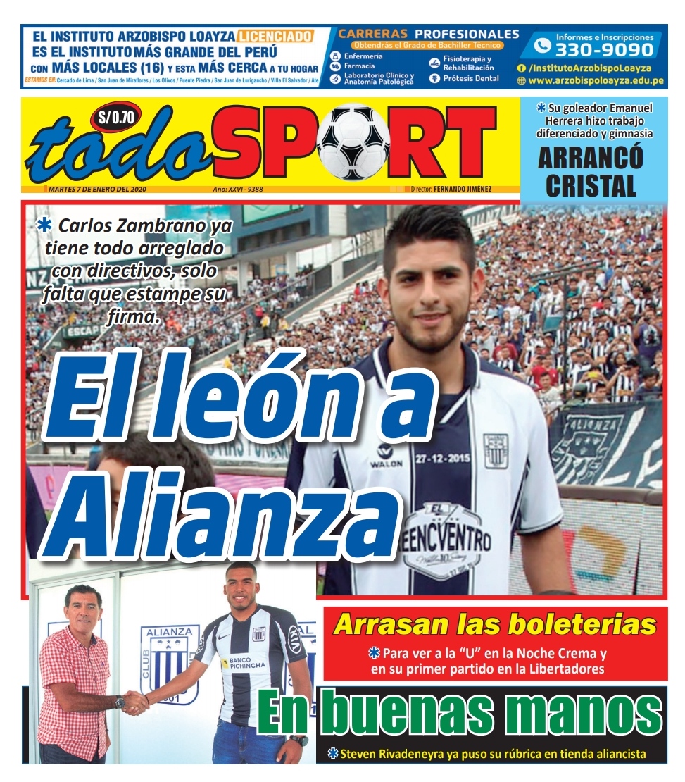 Portada impresa – Diario Todo Sport (07/01/2020)