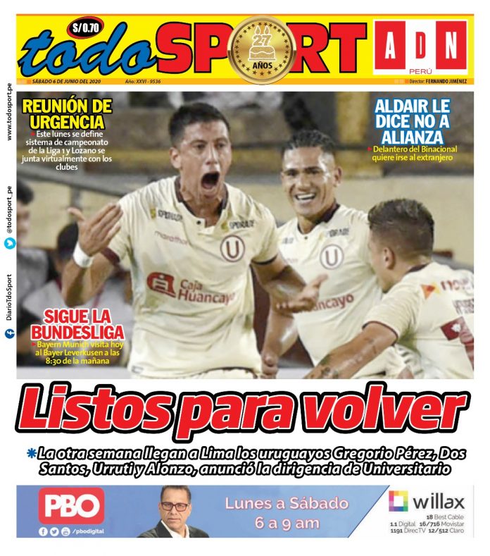 Portada impresa – Diario Todo Sport (07/06/2020)