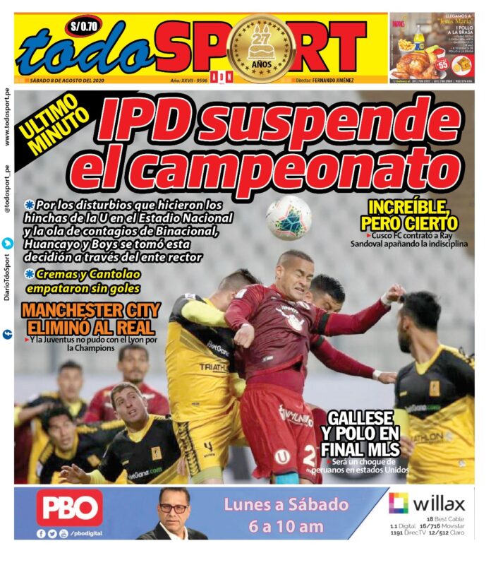 Portada impresa – Diario Todo Sport (08/08/2020)
