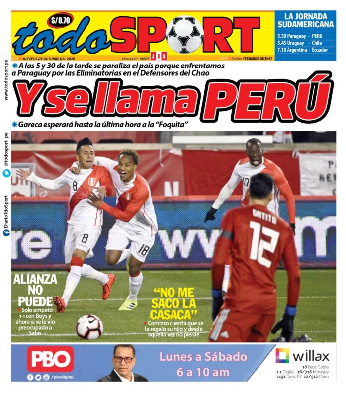 Portada impresa – Diario Todo Sport (08/10/2020)