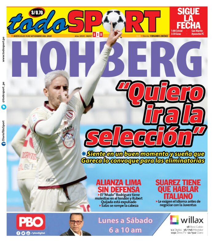 Portada impresa – Diario Todo Sport (09/09/2020)