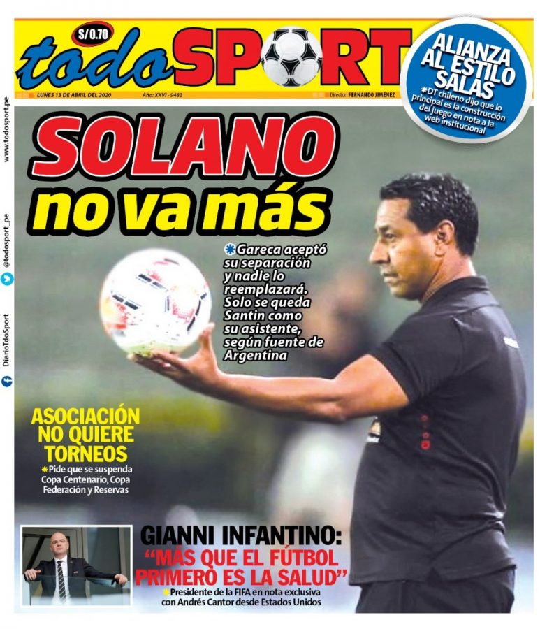 Portada impresa – Diario Todo Sport (13/04/2020)