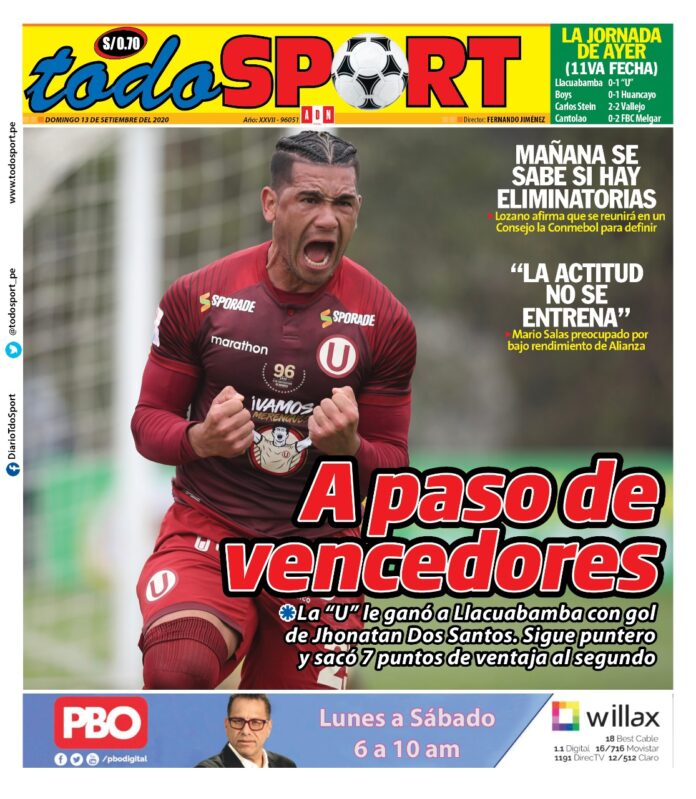 Portada impresa – Diario Todo Sport (13/09/2020)
