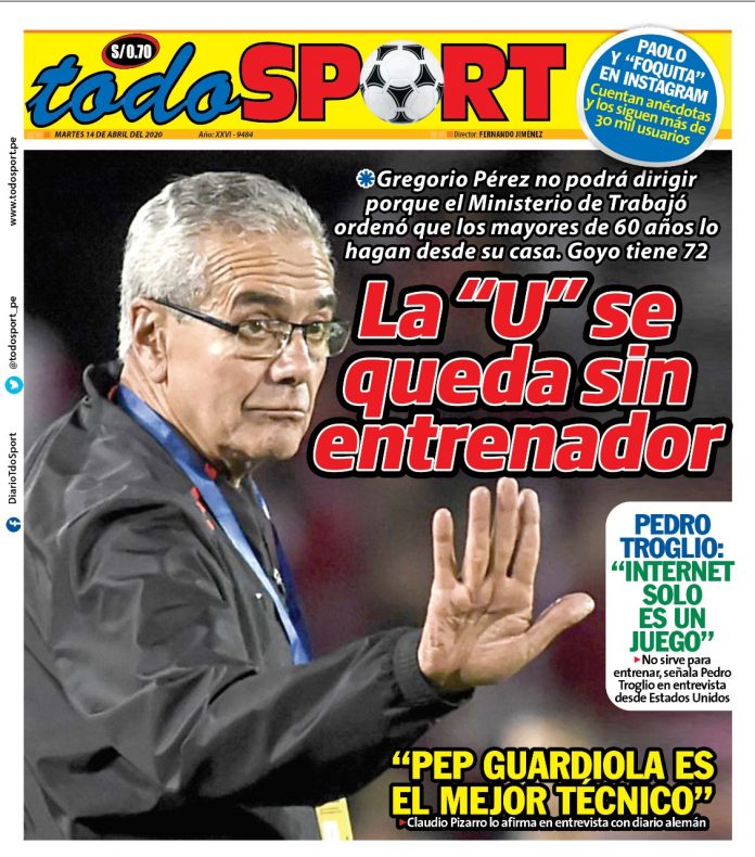 Portada impresa – Diario Todo Sport (14/04/2020)