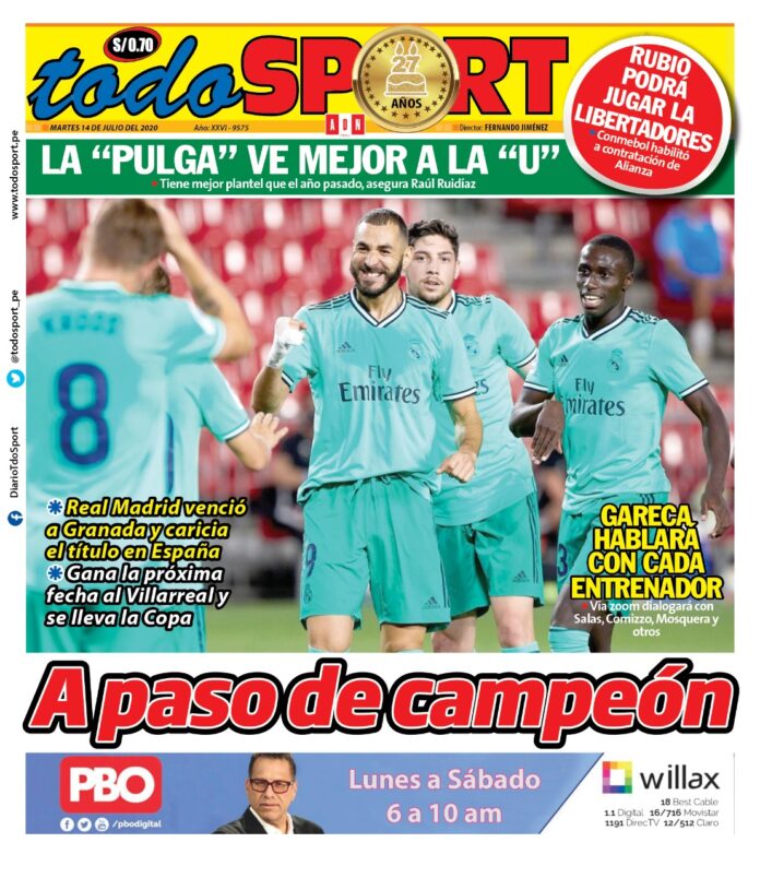 Portada impresa – Diario Todo Sport (14/07/2020)