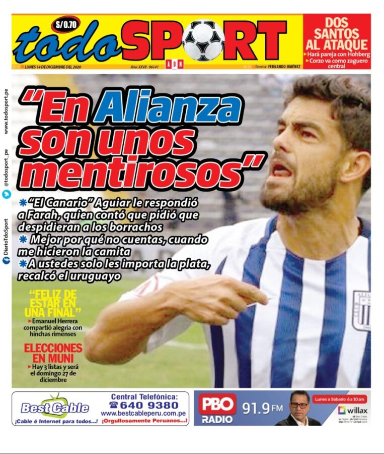 Portada impresa – Diario Todo Sport (14/12/2020)