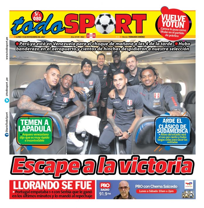 Portada impresa – Diario Todo Sport (15/11/2021)