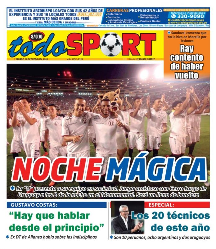 Portada impresa – Diario Todo Sport (18/01/2020)