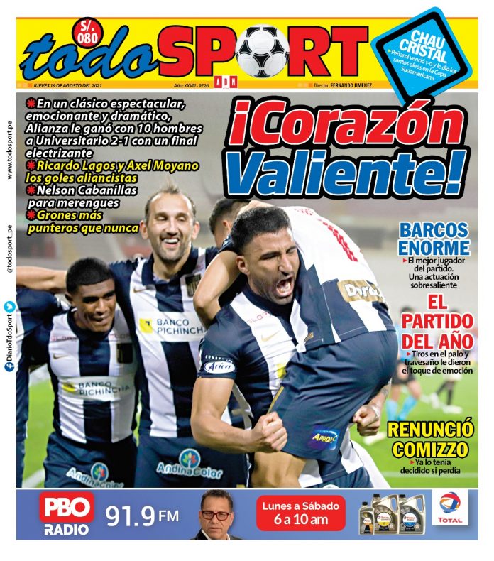 Portada impresa – Diario Todo Sport (19/08/2020)