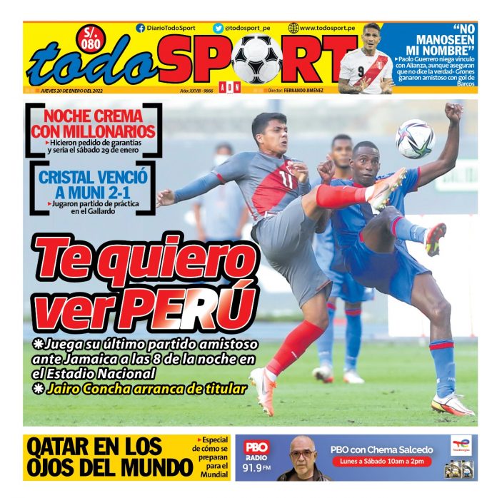 Portada impresa – Diario Todo Sport (20/01/2022)