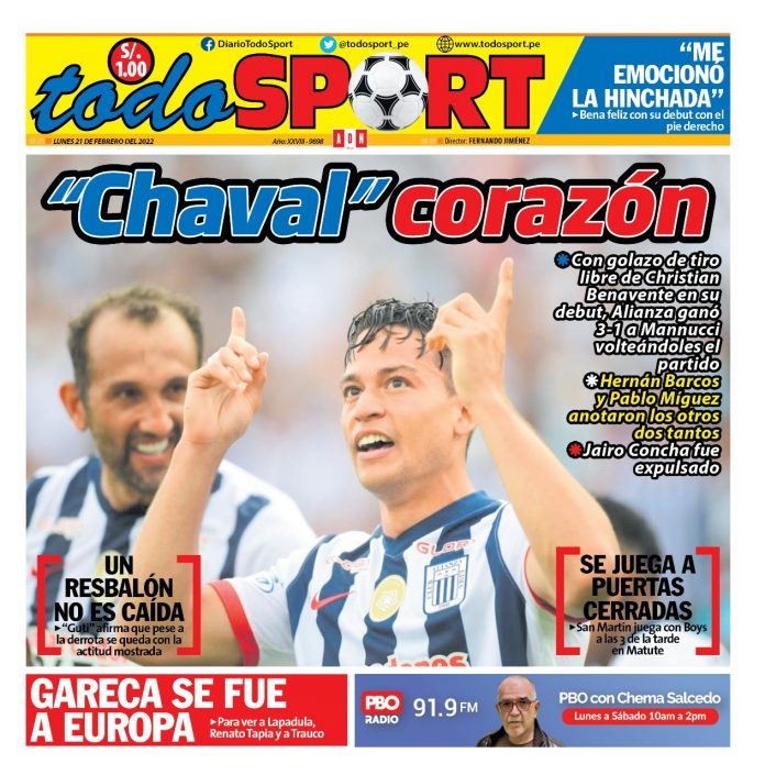 Portada impresa – Diario Todo Sport (21/02/2022)