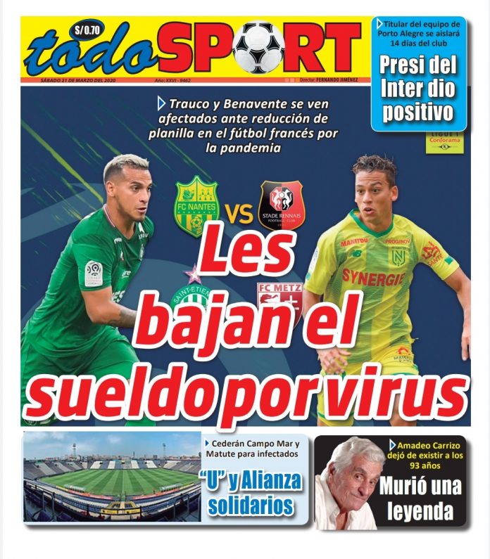 Portada impresa – Diario Todo Sport (21/03/2020)