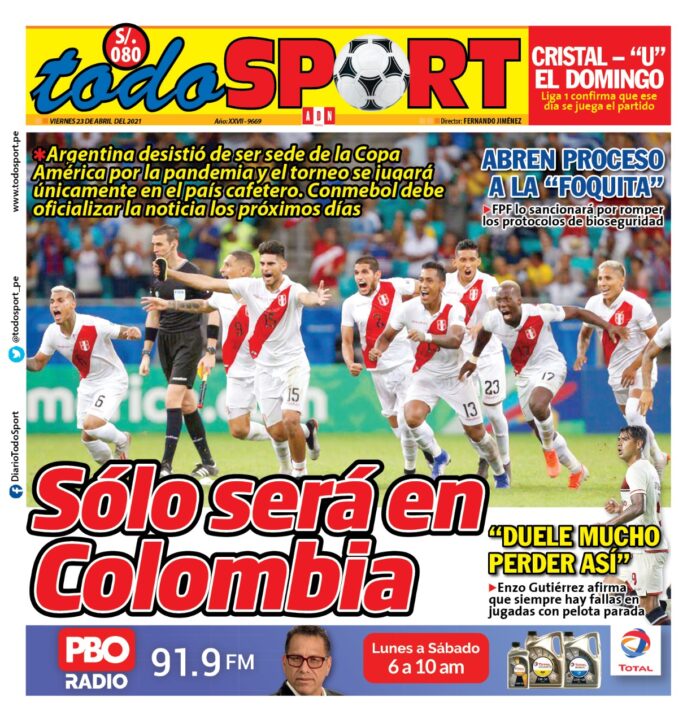 Portada impresa – Diario Todo Sport (23/04/2020)