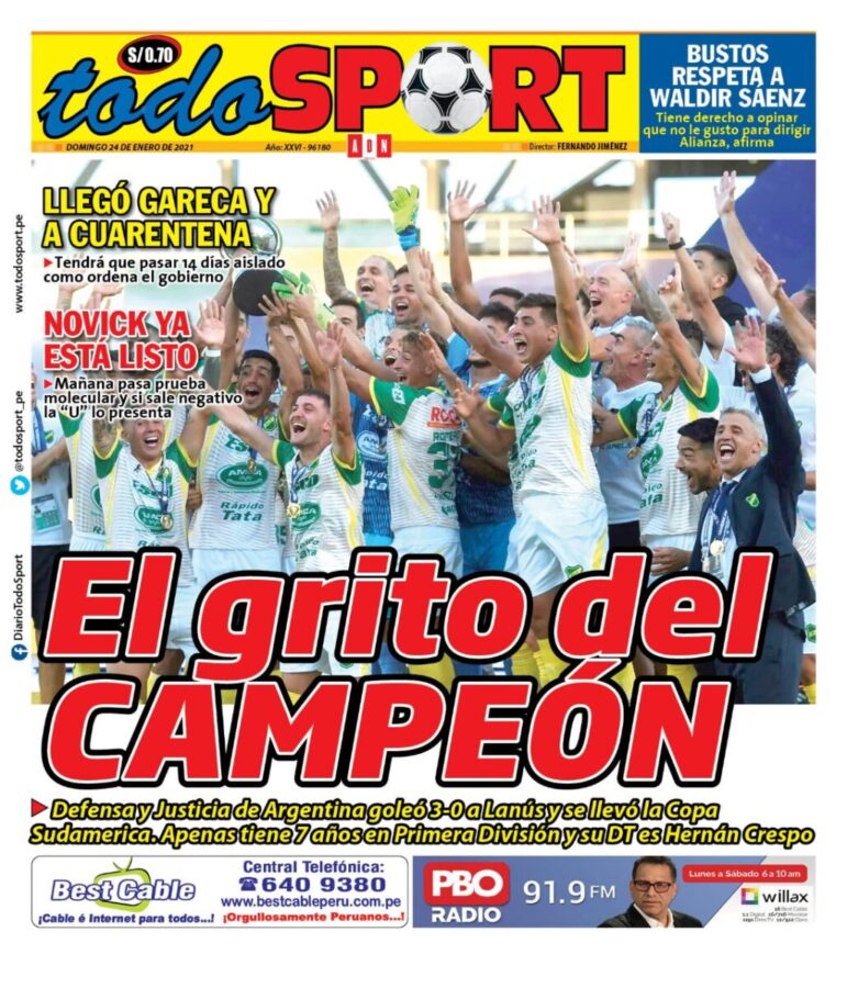 Portada impresa – Diario Todo Sport (24/01/2020)