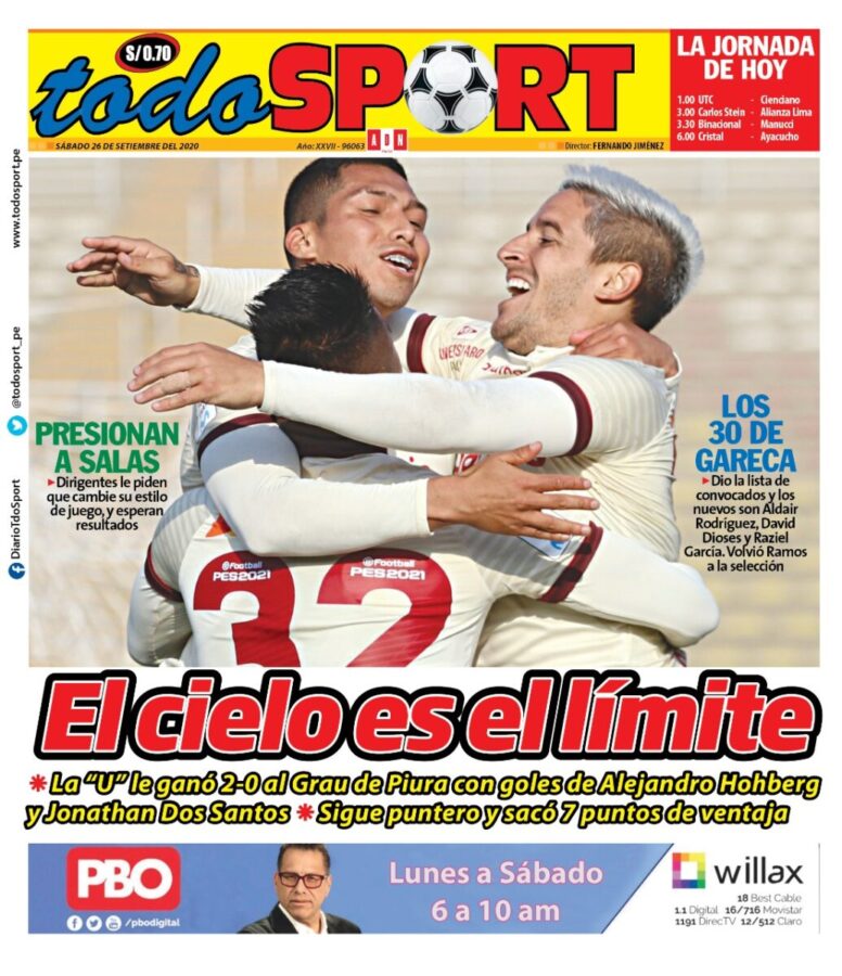 Portada impresa – Diario Todo Sport (26/09/2020)
