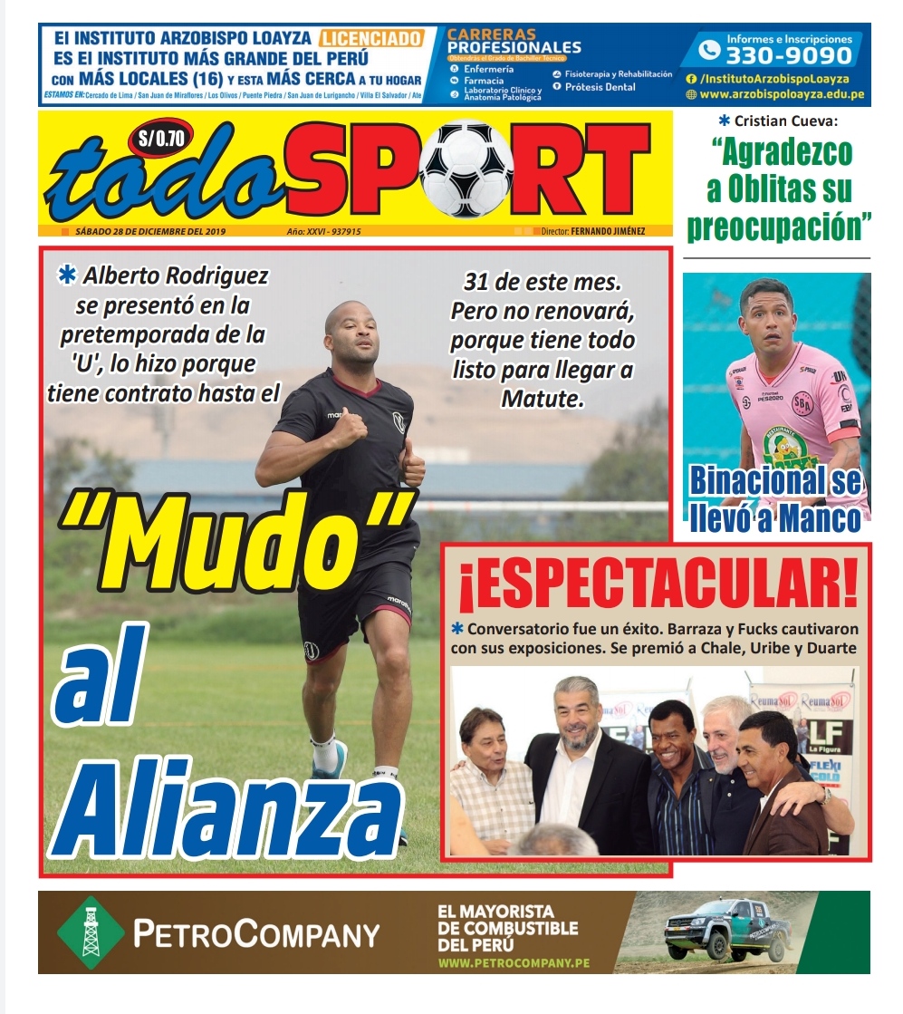 Portada impresa – Diario Todo Sport (28/12/2019)