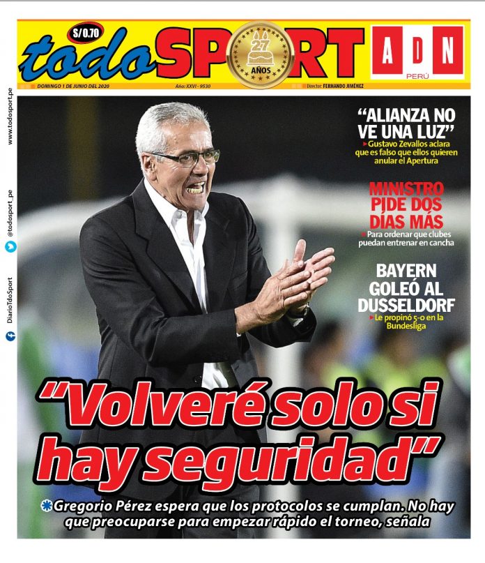 Portada impresa – Diario Todo Sport (31/05/2020)