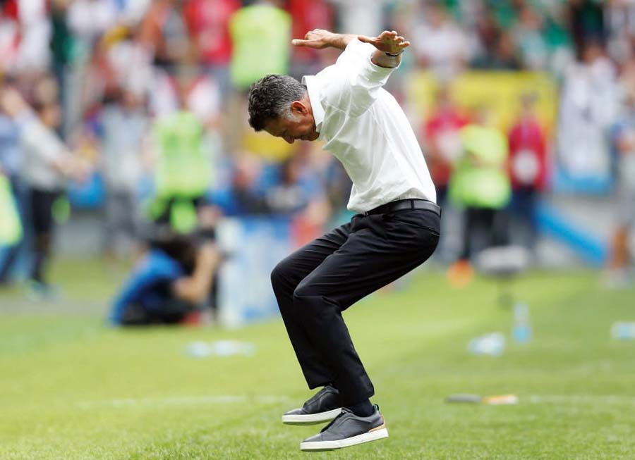OSORIO QUIERE VOLAR.- El técnico de México, el colombiano Juan Osorio, parece que quiere tomar vuelo luego del espectacular triunfo de su equipo ante Alemania. Sin duda que los charros están ganadores.
