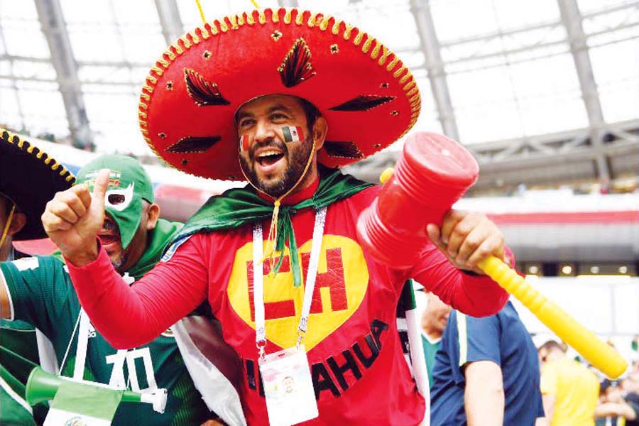 SU ESCUDO ES UN CORAZÓN.- Este fanático mexicano llamó la atención de todos disfrazado del Chapulín Colorado. Dice que su presencia siempre le trae suerte al elenco verde que ayer dio la gran sorpresa mundial.