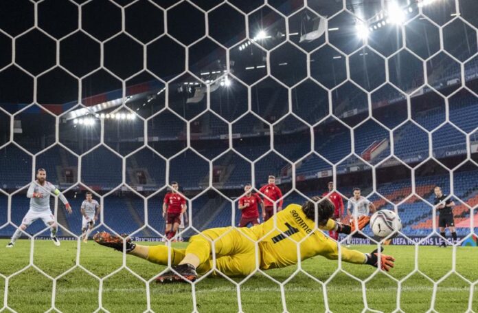 En la segunda parte, Seferovic no supo resolver a puerta vacía y Ramos sacó el balón sobre la línea. El partido estaba enloquecido y el árbitro pitó penalti por unas manos de Ricardo Rodrigues que podía propiciar el empate español. Sin embargo, el portero Sommer aguantó a Ramos y desvió la pena máxima. Morata forzó un penalti que, además, tuvo como propina la expulsión por doble amarilla de Elvedi.