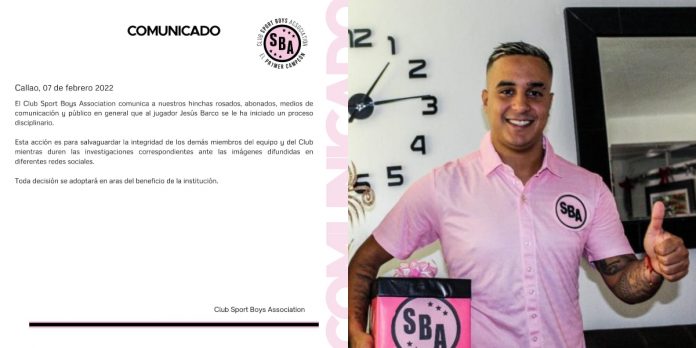 «El club Sport Boys comunica a nuestros hinchas rosados, abonados, medios de comunicación y público en general que al jugador Jesús Barco se le ha iniciado un proceso disciplinario», asegura el comunicado rosado en sus redes sociales.