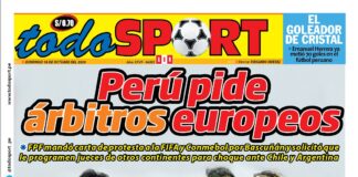Portada impresa – Diario Todo Sport (19/10/2020)